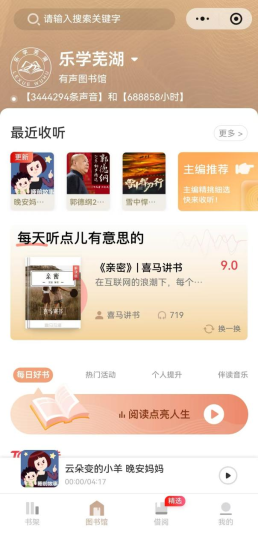 担心电脑端学习不够便捷?平台同步推出移动端,扫码即可随时随地登录学习!更有“乐学芜湖Pro”有声图书馆重磅加持,免费开放145个分类书单,涵盖喜马拉雅超170万条声音,每月新增内容达万小时。红色党建、历史人文、健康养生、中医名家、睡前故事、亲子儿童等丰富内容应有尽有,还有60万册电子书及13万集视频资源可远程访问,耳朵听、眼睛看,学习方式随心选。